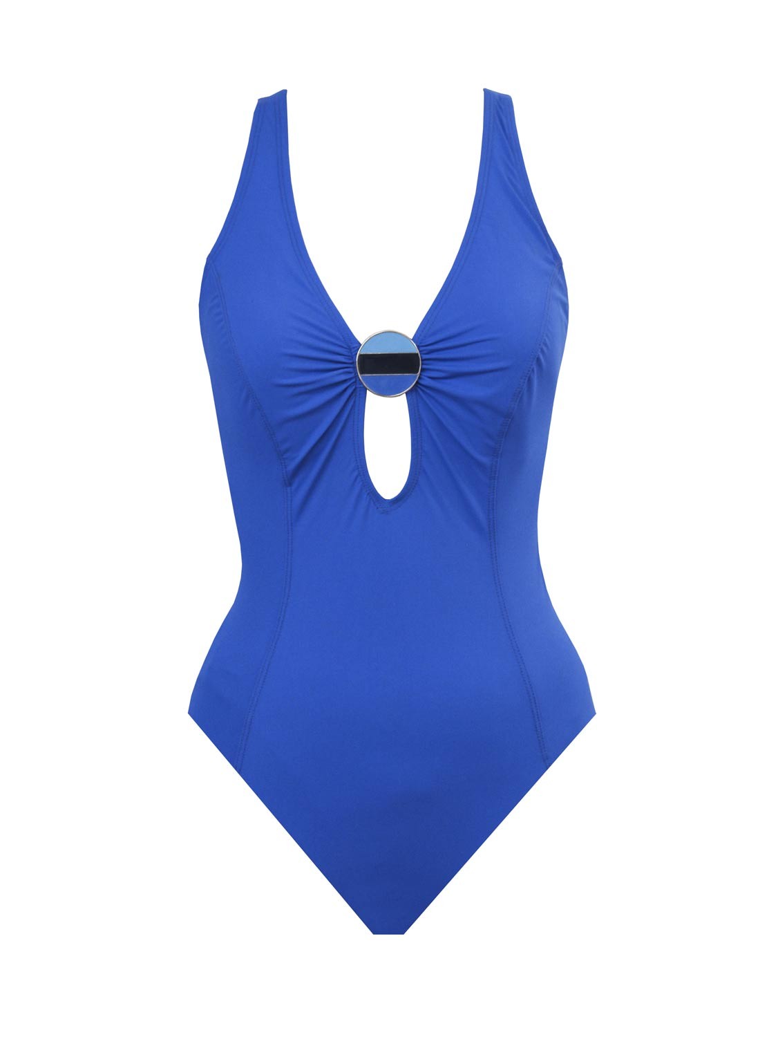 Maillot de bain lissant 1 pièce plongeant Electra Bleu Electrique - Crete - Amoressa