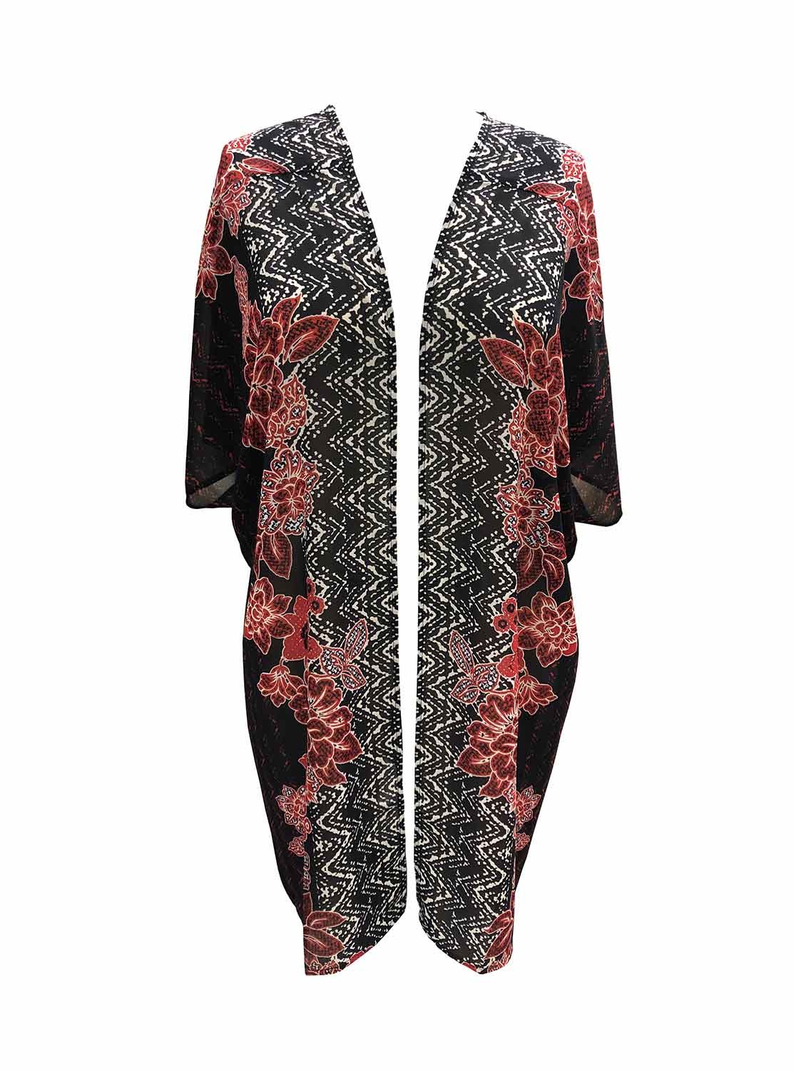 Robe de bain Beach Wrap Noir/Imprimés à fleurs - Mendhika - " M " - Miraclesuit Swimwear