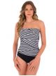 Le jeu de rayures noires et blanches sur le devant du maillot sublimera votre silhouette qui sera affinée par le dos uni noir.