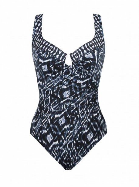 La forme Escape de la marque Miraclesuit apporte un grand maintien de part sa forme gainante avec armatures intégrées. Les bonnets moulés sans couture donnent un superbe galbe à votre poitrine. Les bretelles molletonnées sont très confortables et contribuent à recentrer la poitrine. A l'entre-seins, la construction de la pièce offre une parfaite modularité car l'écartement s'ajustera en fonction de la taille de poitrine pour un confort optimal. Son imprimé graphique bleu et blanc apportera une touche d'originalité, et vous donnera l'assurance d'être mise en valeur au bord de l'eau.