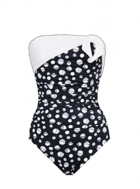 Votre décolleté est sublimé par un effet de drapage en contraste blanc sur le haut de la poitrine, habillé d'un noeud sur le coté.